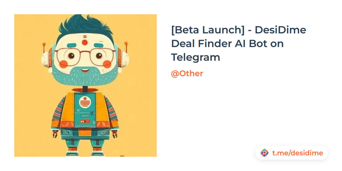 [Beta Launch] - DesiDime Deal Finder AI Bot on Telegram