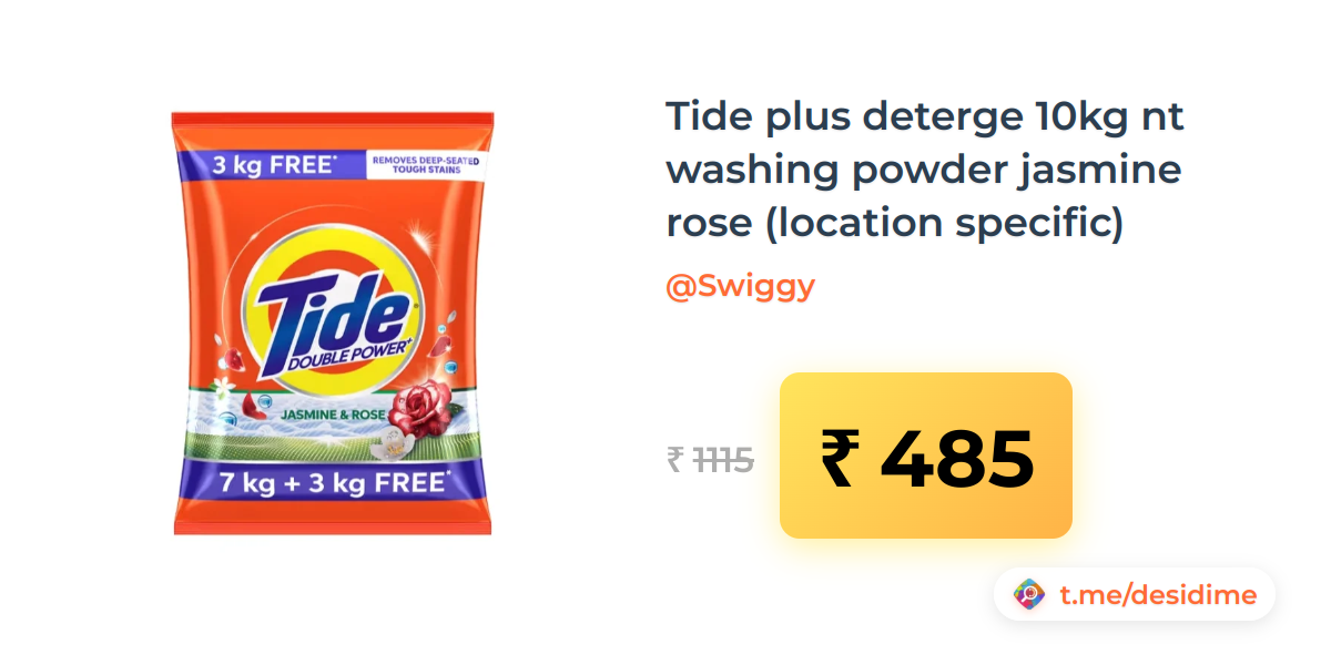 57% off on - Tide plus deterge 10kg nt washing powder jasmine rose (location specific) - Rs. 485