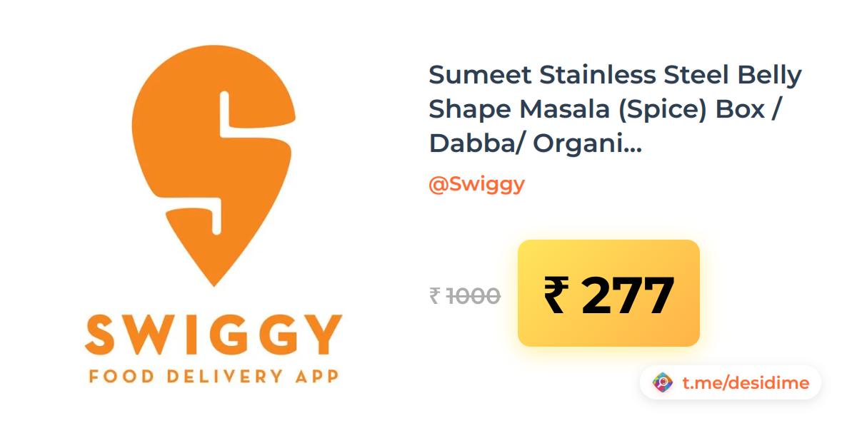 72% off on - Sumeet Stainless Steel Belly Shape Masala (Spice) Box / Dabba/ Organiser with See Through Lid (Size No. 10, 17.1cm Dia, 1.1L Capacity, 7 Containers and Small Spoon, Silver) - Rs. 277