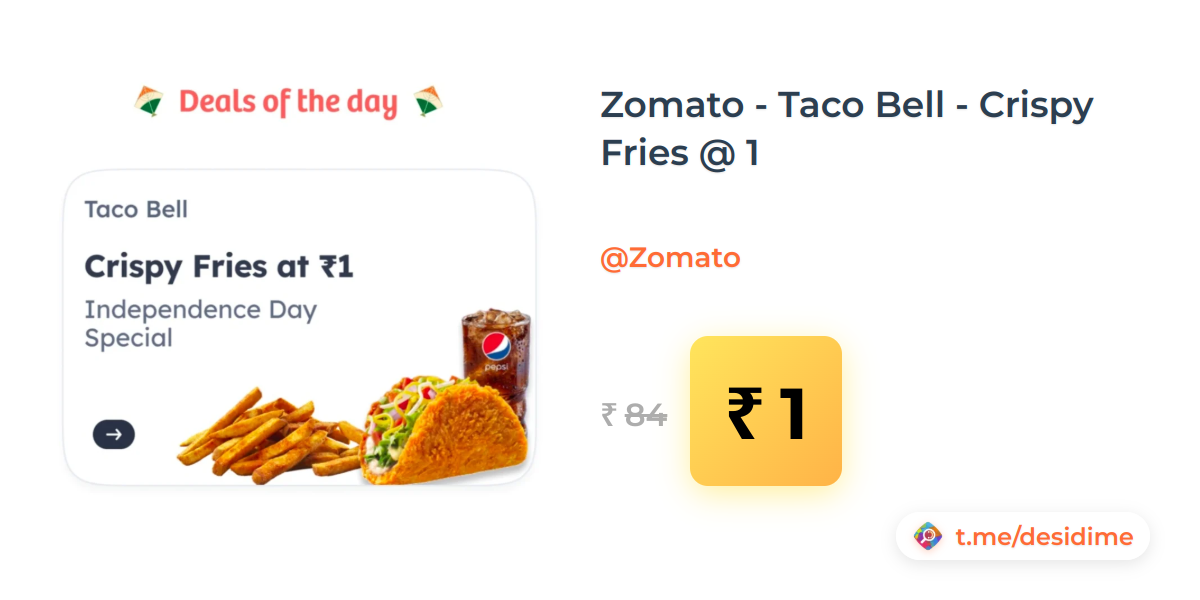 99% off on - Zomato - Taco Bell - Crispy Fries @ 1 - Rs. 1