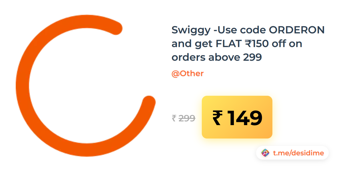 50% off on - Swiggy -Use code ORDERON and get FLAT ₹150 off on orders above 299 - Rs. 149