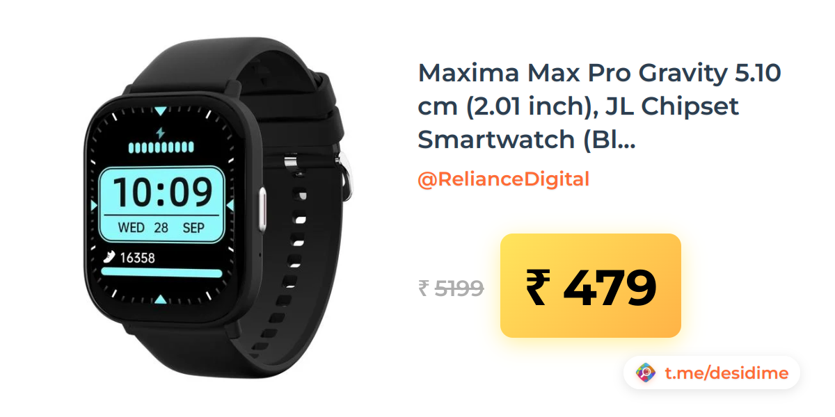 91% off on - Maxima Max Pro Gravity 5.10 cm (2.01 inch), JL Chipset Smartwatch (Black Strap, Free Size) - Rs. 479