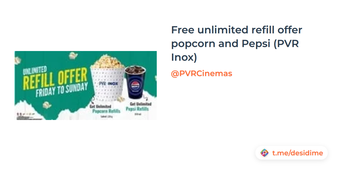 Free unlimited refill offer popcorn and Pepsi (PVR Inox)