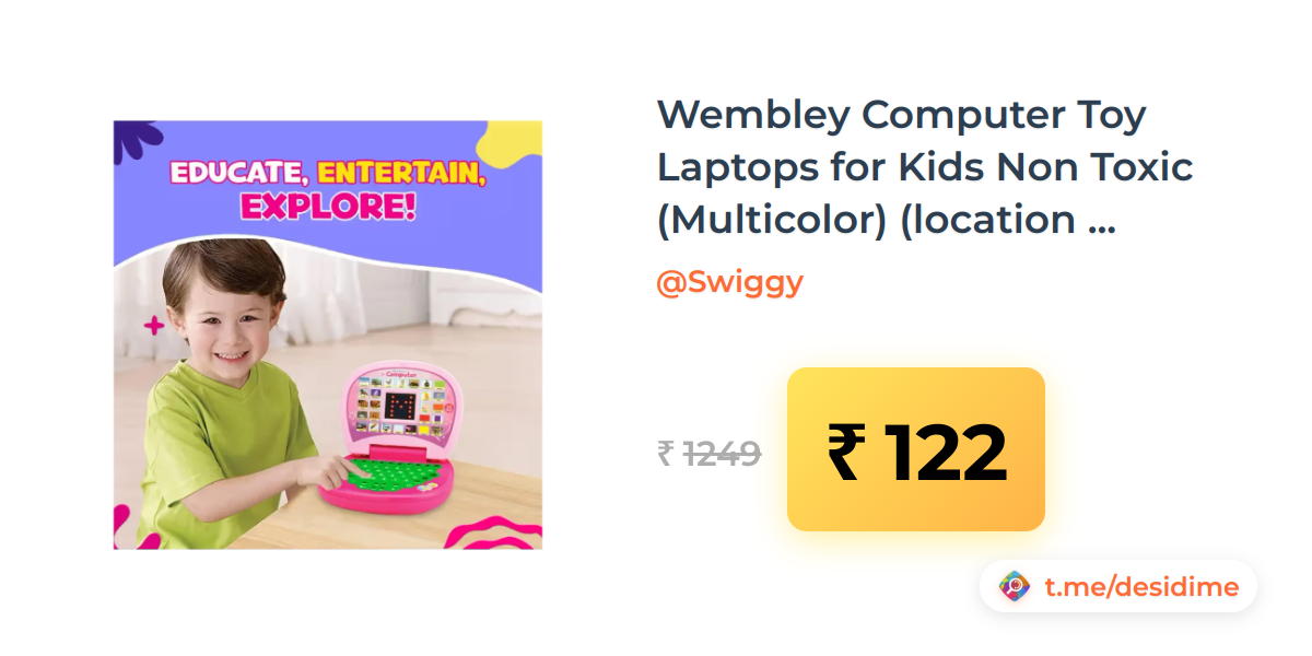 90% off on - Wembley Computer Toy Laptops for Kids Non Toxic (Multicolor) (location specific) [MaxxSaver] - Rs. 122