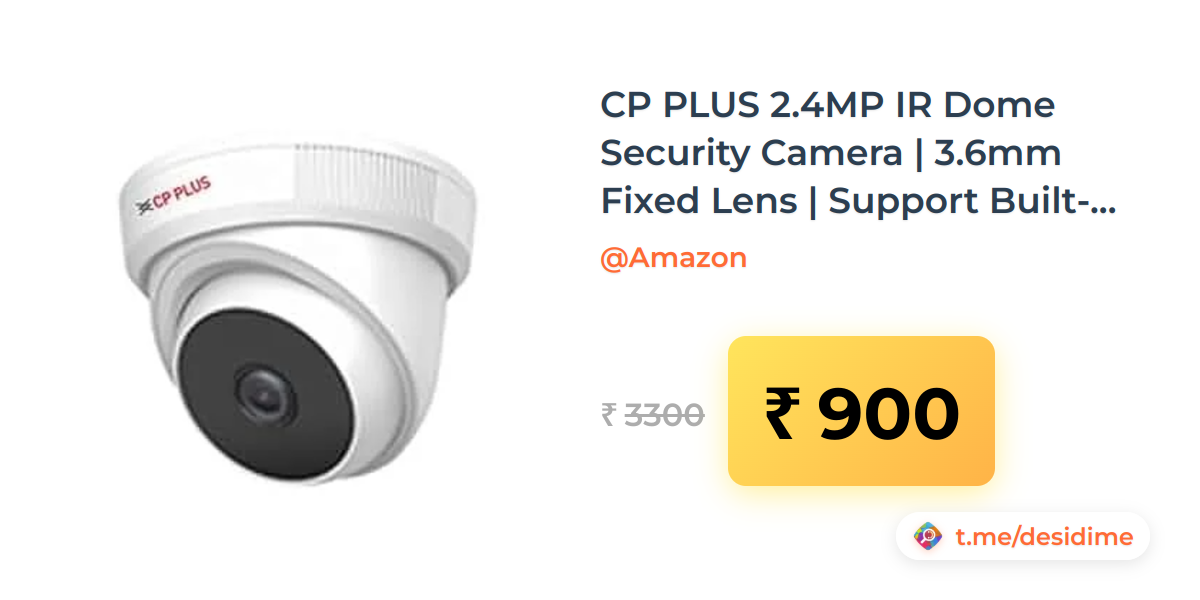 73% off on - CP PLUS 2.4MP IR Dome Security Camera | 3.6mm Fixed Lens | Support Built-in Mic - Rs. 900
