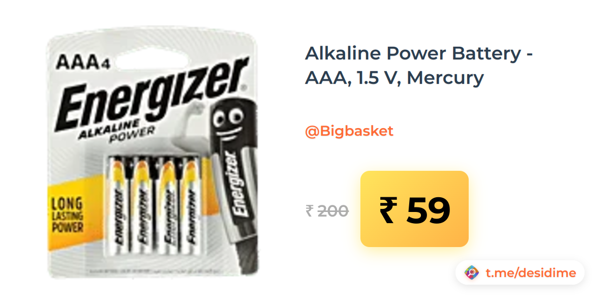 71% off on - Alkaline Power Battery - AAA, 1.5 V, Mercury - Rs. 59