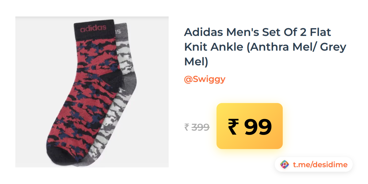 75% off on - Adidas Men's Set Of 2 Flat Knit Ankle (Anthra Mel/ Grey Mel) - Rs. 99