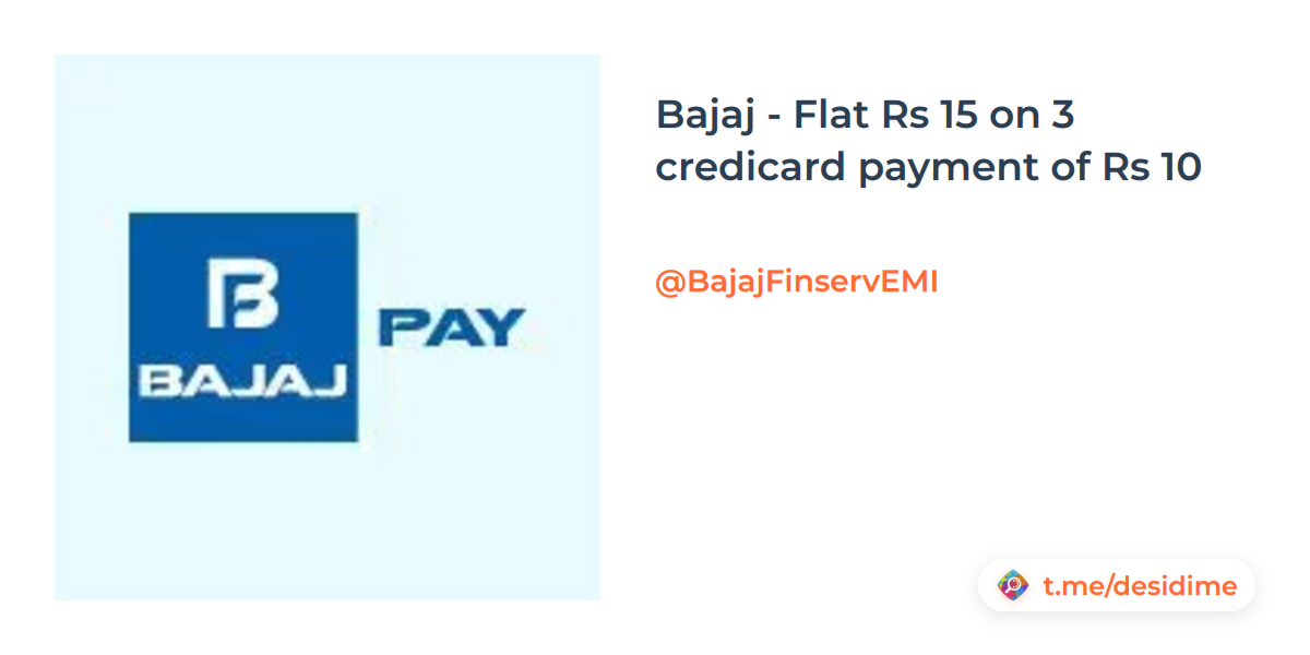 Bajaj - Flat Rs 15 on 3 credicard payment of Rs 10