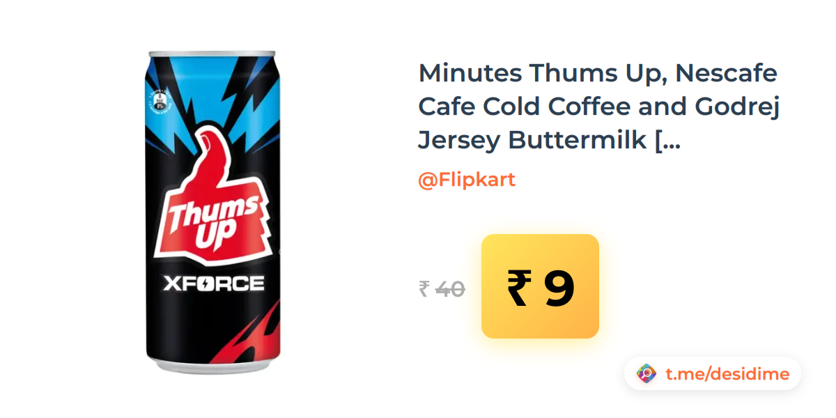 78% off on - Minutes Thums Up, Nescafe Cafe Cold Coffee and Godrej Jersey Buttermilk [location specific] - Rs. 9