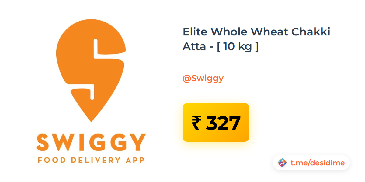 48% off on - Elite Whole Wheat Chakki Atta - [ 10 kg ] - Rs. 327