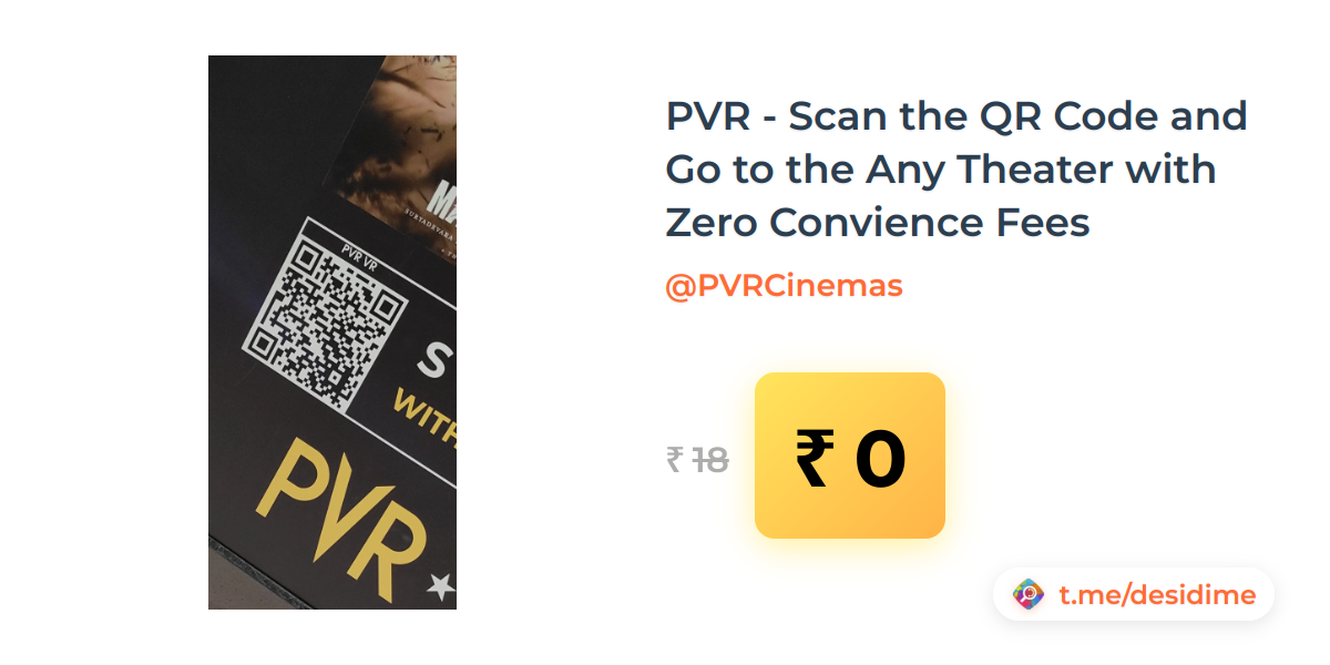 100% off on - PVR - Scan the QR Code and Go to the Any Theater with Zero Convience Fees - Rs. 0