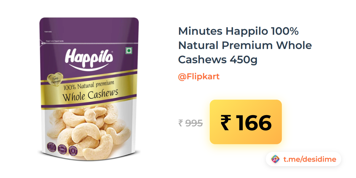 83% off on - Minutes Happilo 100% Natural Premium Whole Cashews 450g - Rs. 166