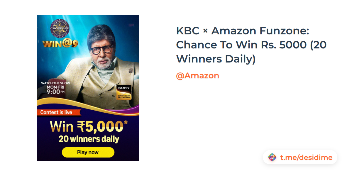 KBC × Amazon Funzone: Chance To Win Rs. 5000 (20 Winners Daily)