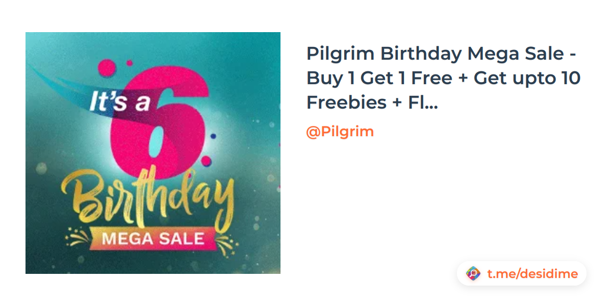 Pilgrim Birthday Mega Sale - Buy 1 Get 1 Free + Get upto 10 Freebies + Flash Sales & More offers