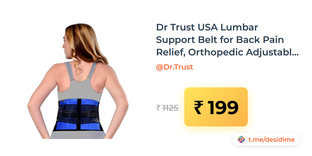 82% off on - Dr Trust USA Lumbar Support Belt for Back Pain Relief, Orthopedic Adjustable Lumbo sacral Spine Strain Belt For Backache, Posture Corrector, Waist, Lower Back Support For Men/Women - Rs. 199