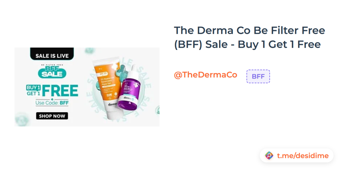 The Derma Co Be Filter Free (BFF) Sale - Buy 1 Get 1 Free