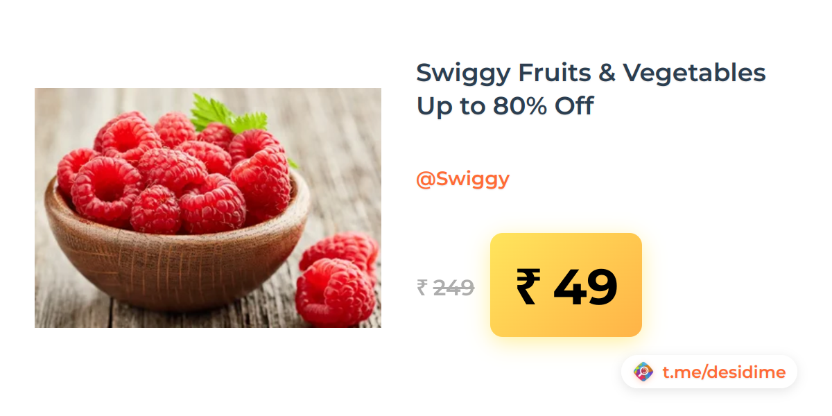 80% off on - Swiggy Fruits & Vegetables Up to 80% Off - Rs. 49