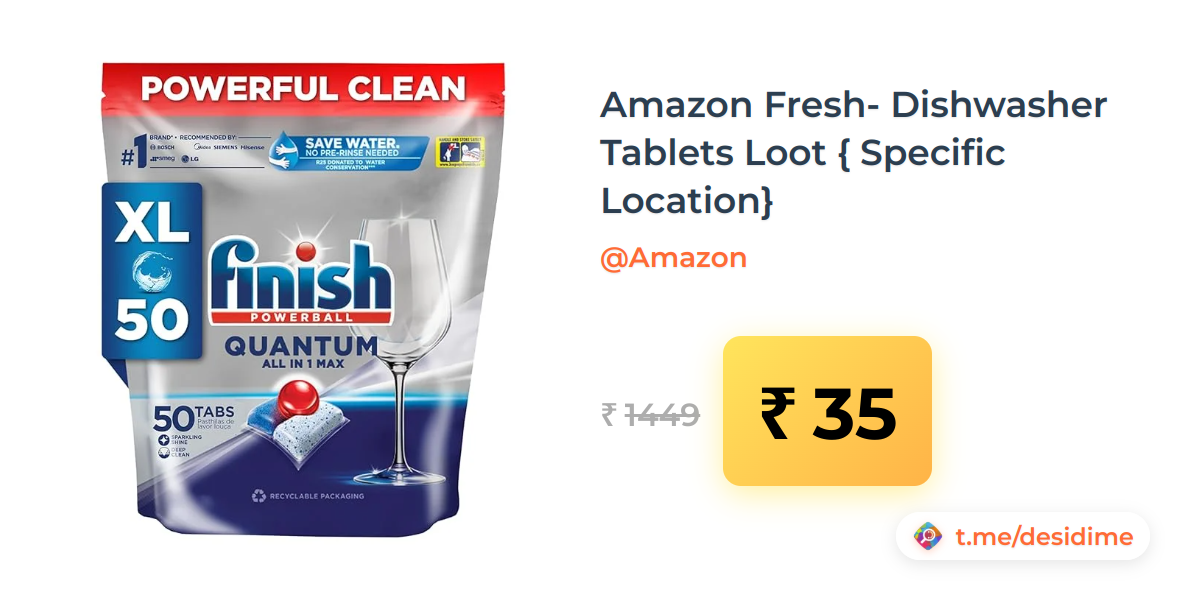 🌡 652° - Amazon Fresh- Dishwasher Tablets { Specific Location} - Rs 35