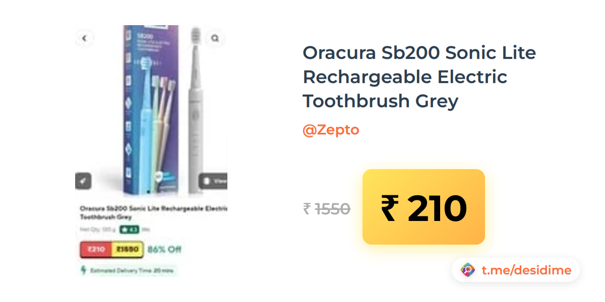 86% off on - Oracura Sb200 Sonic Lite Rechargeable Electric Toothbrush Grey