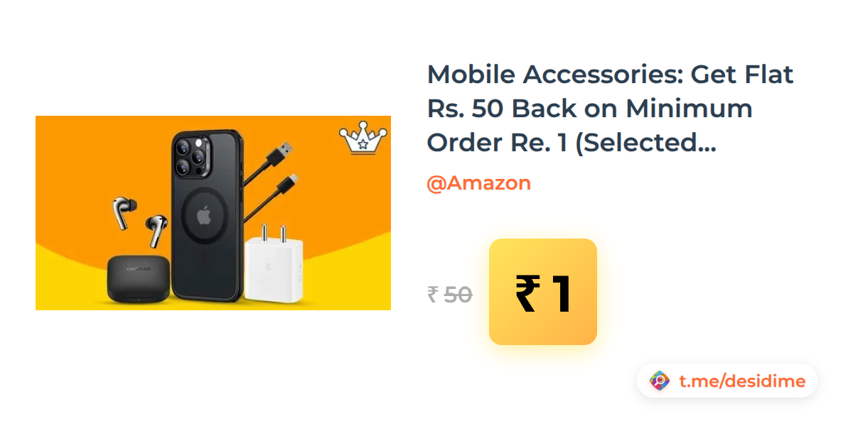 98% off on - Mobile Accessories: Get Flat Rs. 50 Back on Minimum Order Re. 1 (Selected Accounts) - Rs. 1