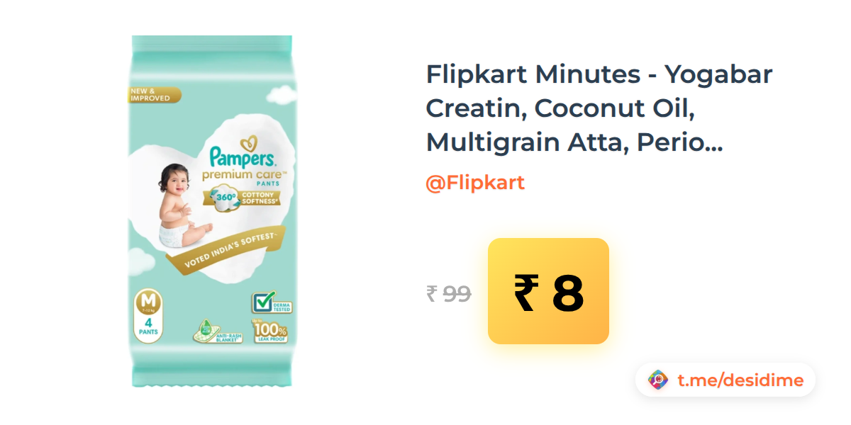 92% off on - Flipkart Minutes - Yogabar Creatin, Coconut Oil, Multigrain Atta, Period Panties, Schezwan Chutney and more (location specific) - Rs. 8