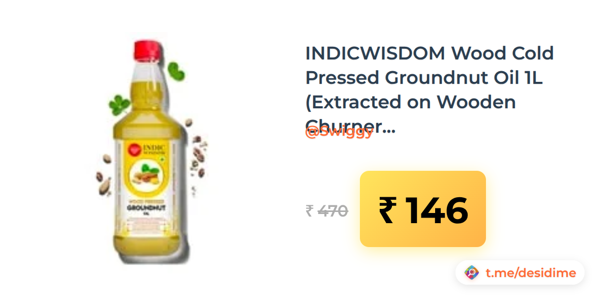 69% off on - INDICWISDOM Wood Cold Pressed Groundnut Oil 1L (Extracted on Wooden Churner) on Swiggy Instamart - Rs. 146