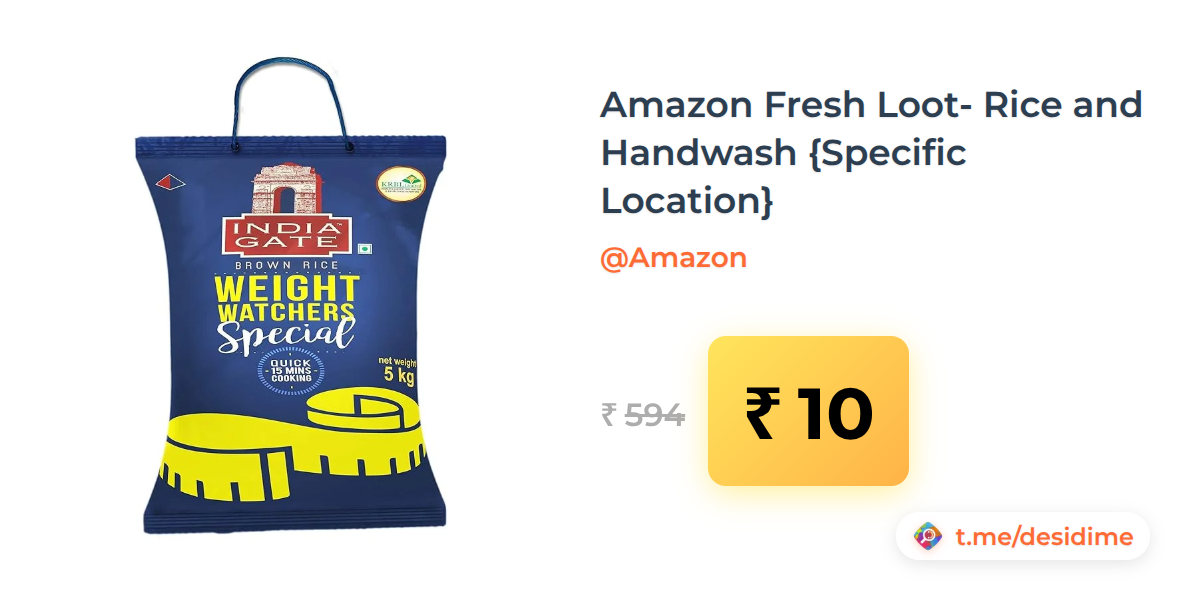98% off on - Amazon Fresh Loot- Rice and Handwash {Specific Location} - Rs. 10