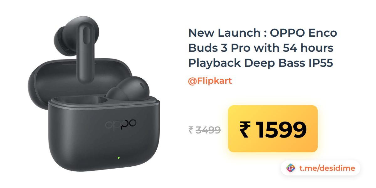 54% off on - New Launch : OPPO Enco Buds 3 Pro with 54 hours Playback Deep Bass IP55 - Rs. 1599
