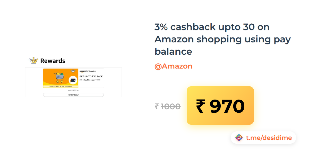 3% off on - 3% cashback upto 30 on Amazon shopping using pay balance - Rs. 970