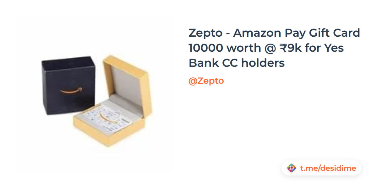 Zepto - Amazon Pay Gift Card 10000 worth @ ₹9k for Yes Bank CC holders