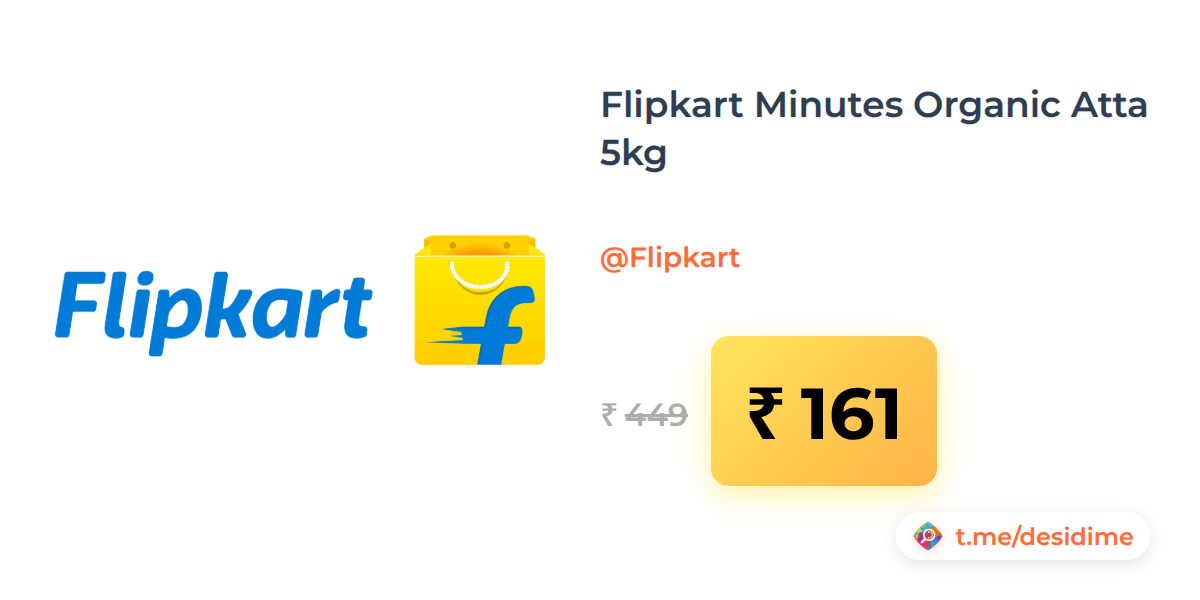 64% off on - Flipkart Minutes Organic Atta 5kg - Rs. 161