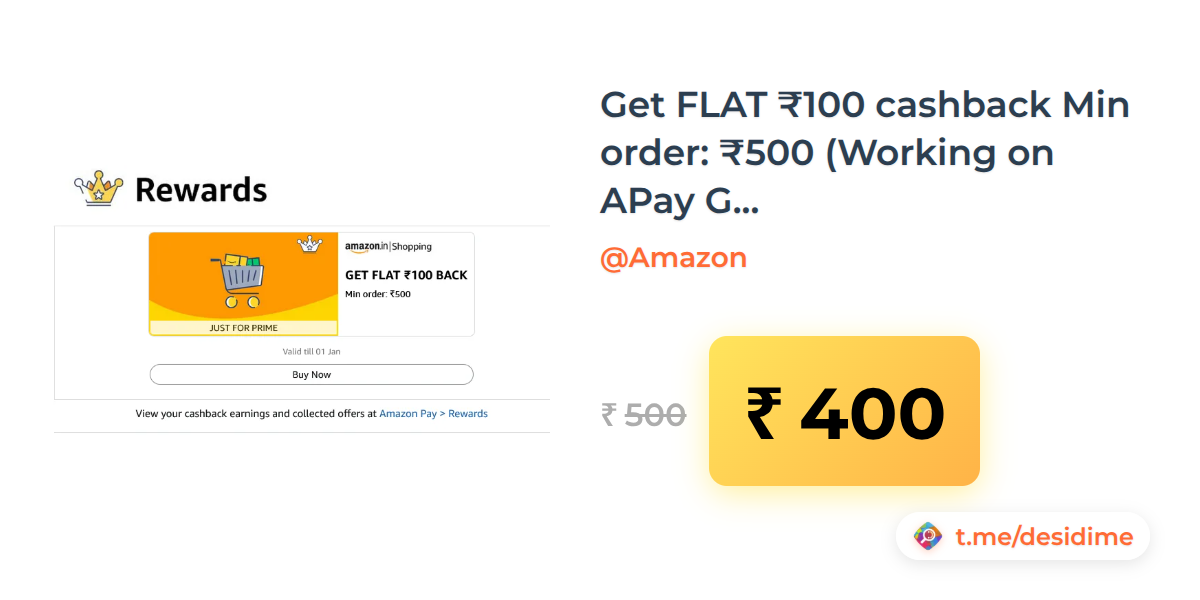 20% off on - Get FLAT ₹100 cashback Min order: ₹500 (Working on APay Gift Card) - Rs. 400