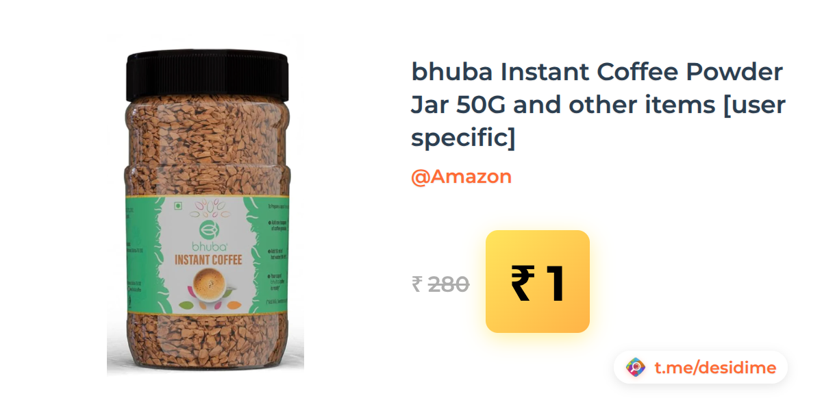 100% off on - bhuba Instant Coffee Powder Jar 50G and other items [user specific] - Rs. 1