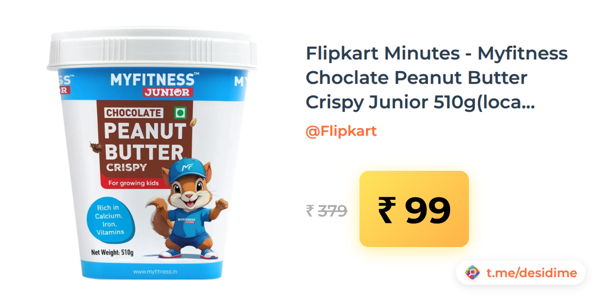 74% off on - Flipkart Minutes - Myfitness Choclate Peanut Butter Crispy Junior 510g(location specific) - Rs. 99