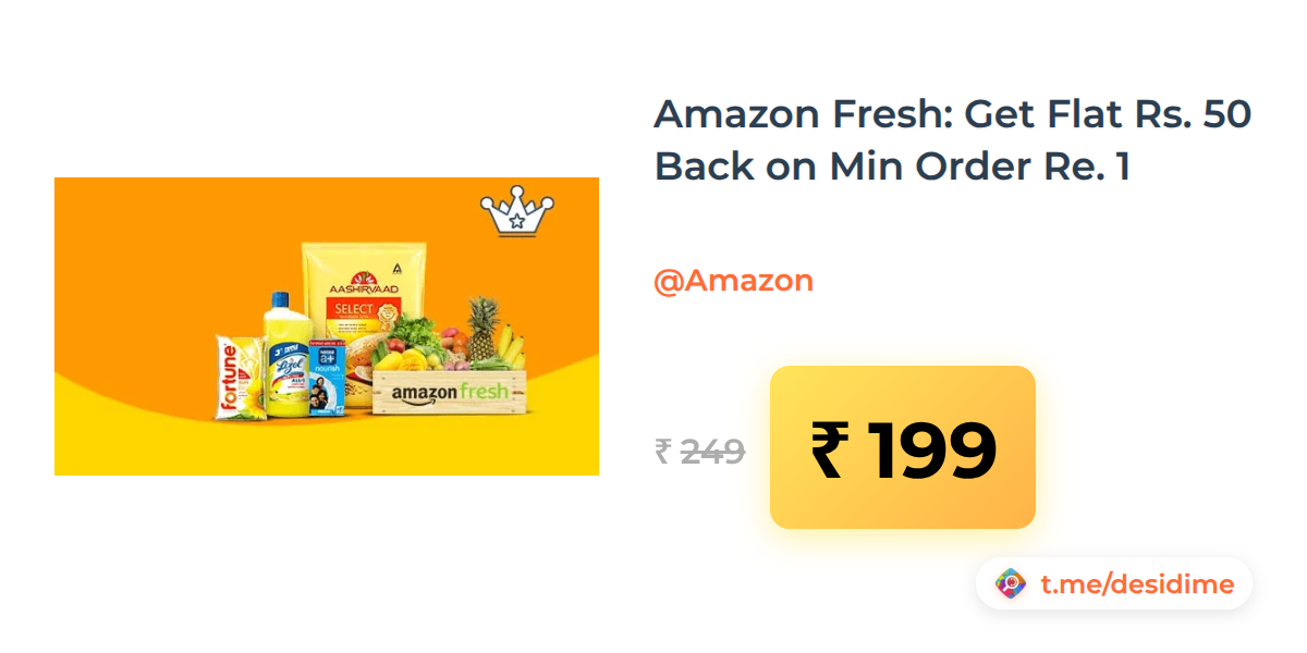 20% off on - Amazon Fresh: Get Flat Rs. 50 Back on Min Order Re. 1 - Rs. 199