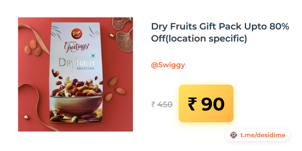 80% off on - Dry Fruits Gift Pack Upto 80% Off(location specific) - Rs. 90