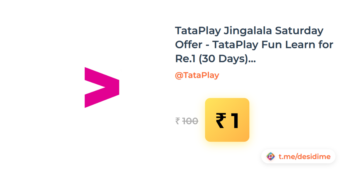 99% off on - TataPlay Jingalala Saturday Offer - TataPlay Fun Learn for Re.1 (30 Days) 06Sep - Rs. 1