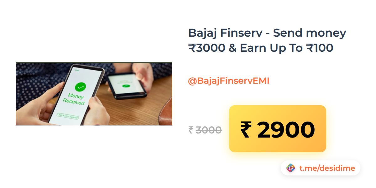 3% off on - Bajaj Finserv - Send money ₹3000 & Earn Up To ₹100 - Rs. 2900