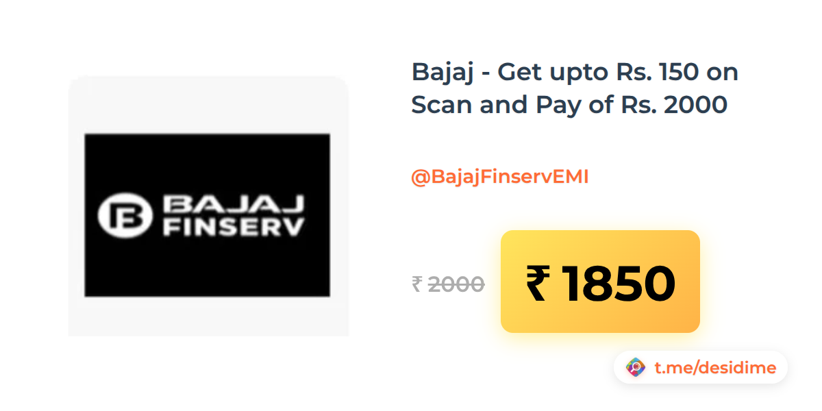 8% off on - Bajaj - Get upto Rs. 150 on Scan and Pay of Rs. 2000 - Rs. 1850