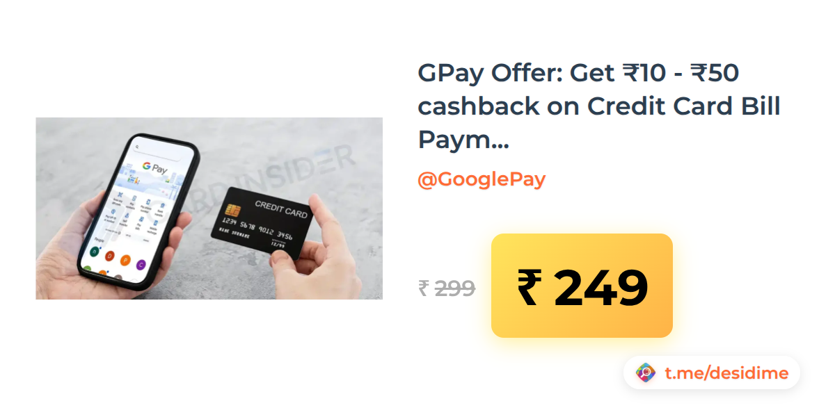 17% off on - GPay Offer: Get ₹10 - ₹50 cashback on Credit Card Bill Payments of Min Txn of ₹299 (User Specific) - Rs. 249