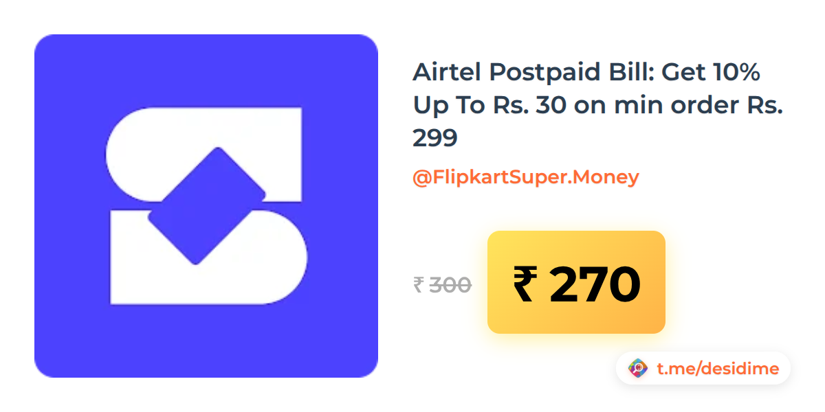 10% off on - Airtel Postpaid Bill: Get 10% Up To Rs. 30 on min order Rs. 299 - Rs. 270