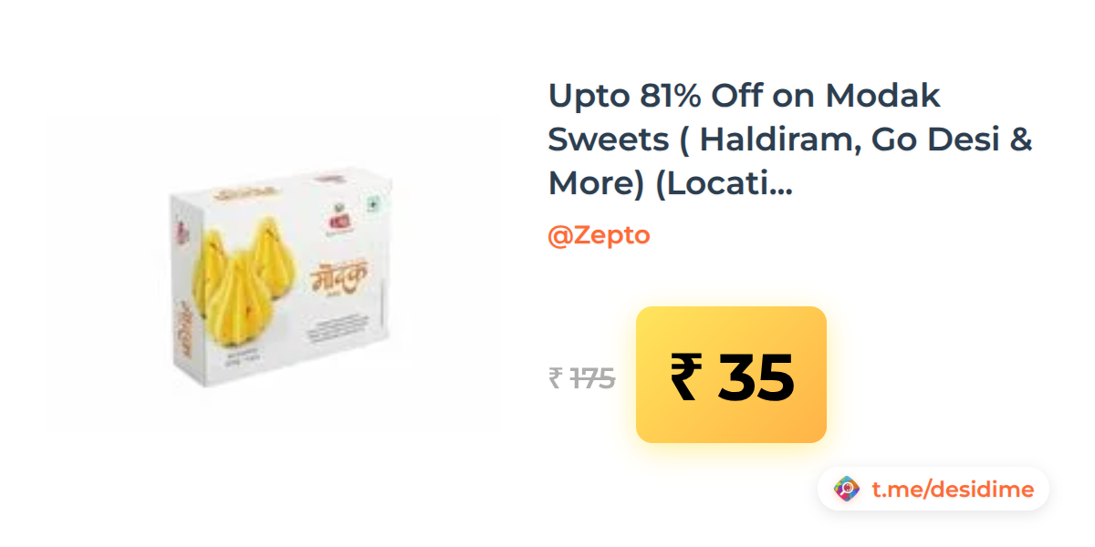 80% off on - Upto 81% Off on Modak Sweets ( Haldiram, Go Desi & More) (Location Specific) - Rs. 35