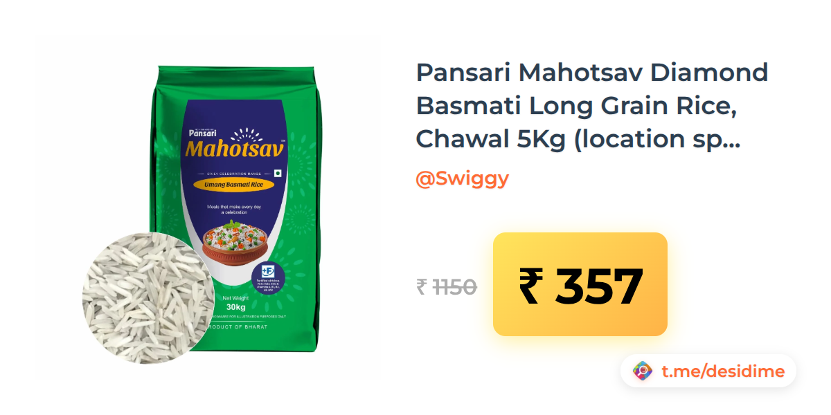 69% off on - Pansari Mahotsav Diamond Basmati Long Grain Rice, Chawal 5Kg (location specific) - Rs. 357