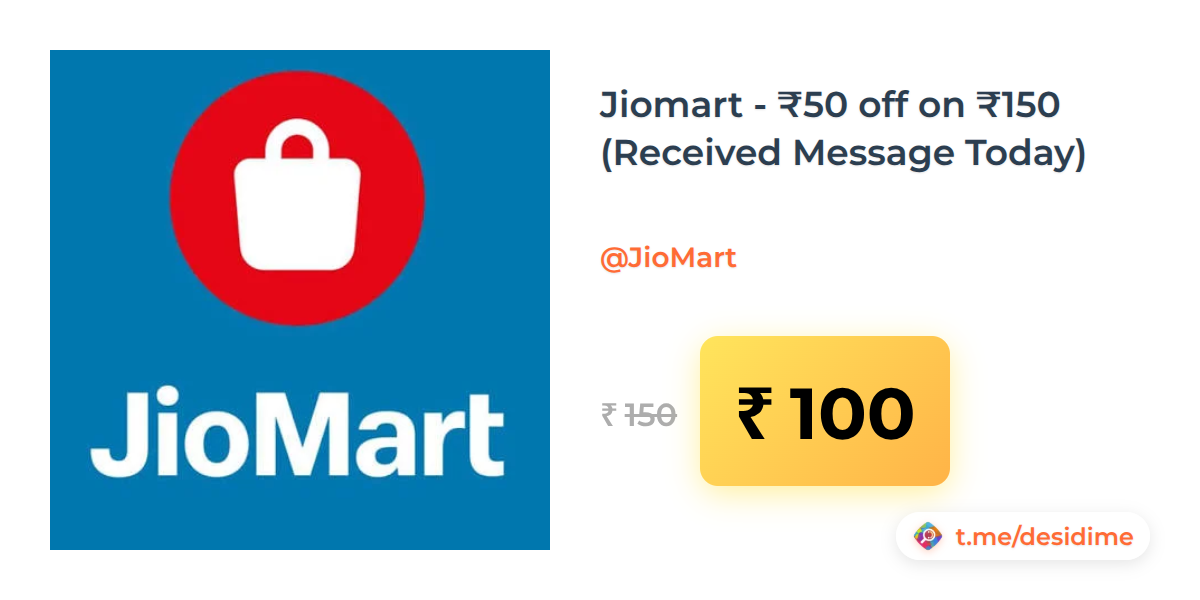 33% off on - Jiomart - ₹50 off on ₹150 (Received Message Today) - Rs. 100