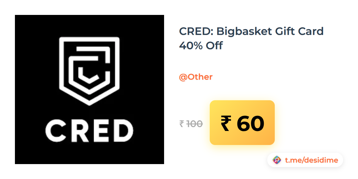 40% off on - CRED: Bigbasket Gift Card 40% Off - Rs. 60