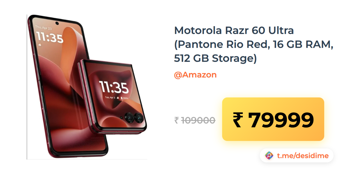 27% off on - Motorola Razr 60 Ultra (Pantone Rio Red, 16 GB RAM, 512 GB Storage) - Rs. 79999
