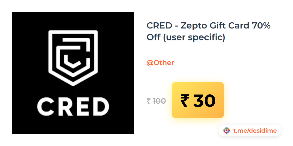 70% off on - CRED - Zepto Gift Card 70% Off (user specific) - Rs. 30
