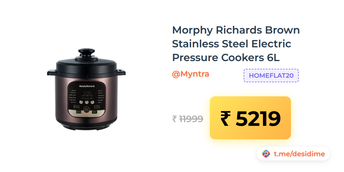 57% off on - Morphy Richards Brown Stainless Steel Electric Pressure Cookers 6L - Rs. 5219