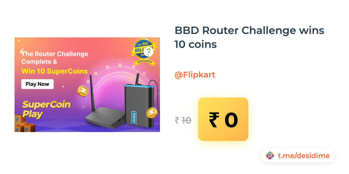 100% off on - BBD Router Challenge wins 10 coins - Rs. 0