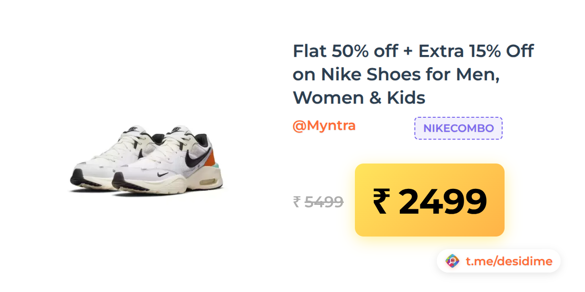 55% off on - Flat 50% off + Extra 15% Off on Nike Shoes for Men, Women & Kids - Rs. 2499